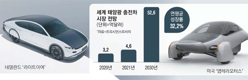935563 기사의 0번째 이미지전통 내연기관에서 하이브리드·전기차로의 자동차 패러다임 전환이 진행 중인 가운데 태양광을 동력으로 하는 태양광차의 상용화도 초읽기에 들어갔다.