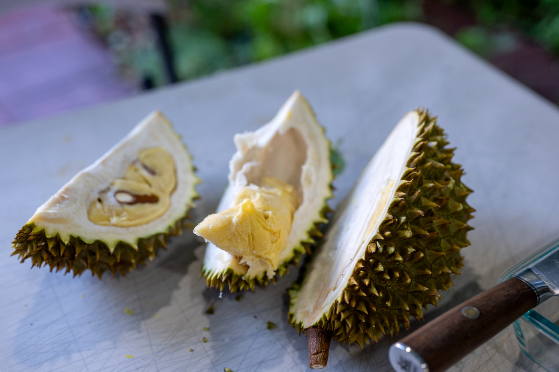 월남 마켓에서 큰 돈($18) 투자해서 월남산 듀리언을 한 개 사왔습니다.