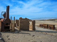 이 사진은 데스밸리(Death Valley) 내에 있는 Furnace Creek 근처의 보레악(硼鑛) 채굴과 제련 유적입니..