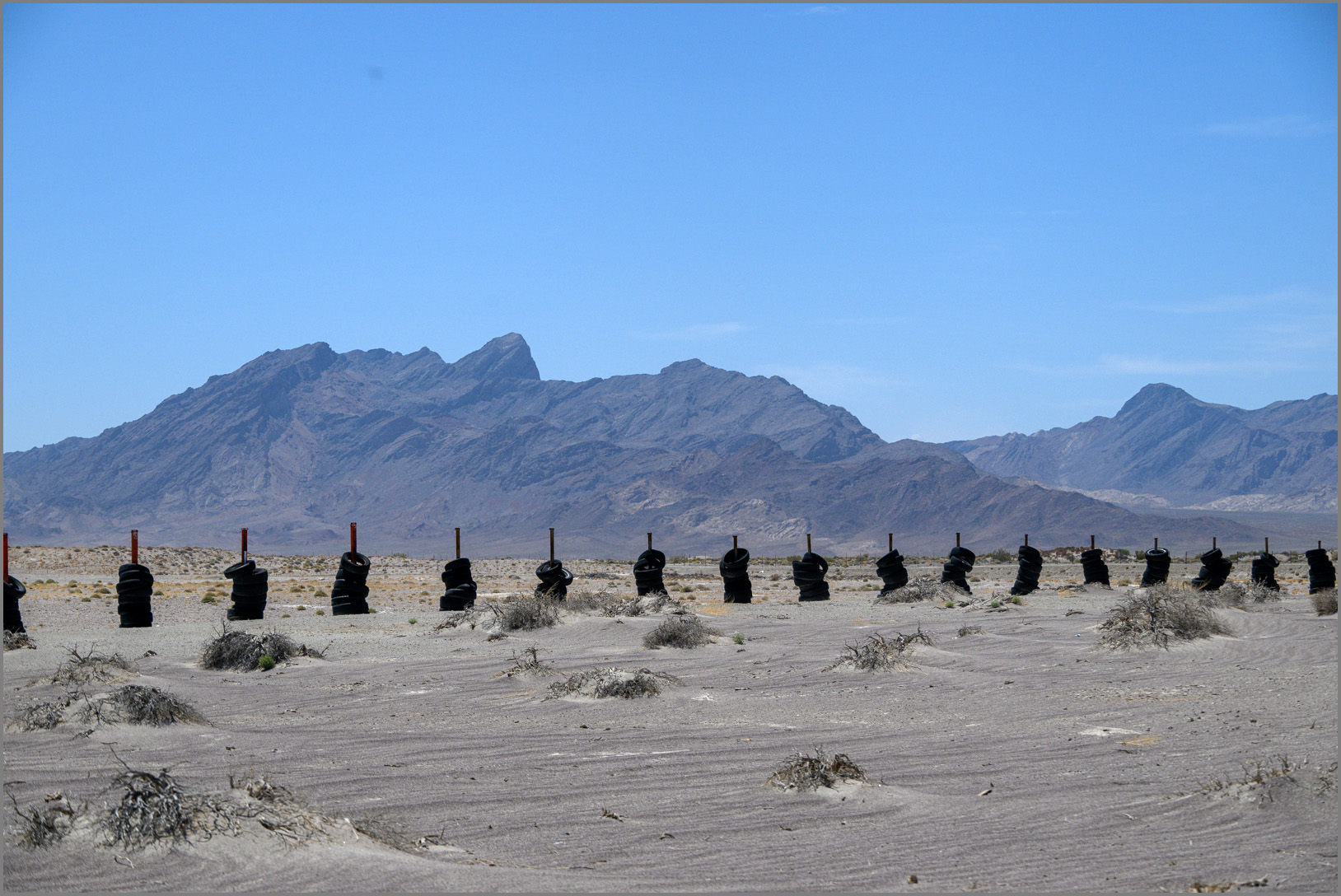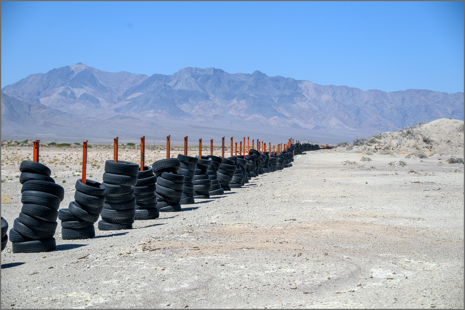 황량한 벌판에 펼텨진 거대한 울타리(?)에 폐타이어를 쌓아 둘러 놨는데요