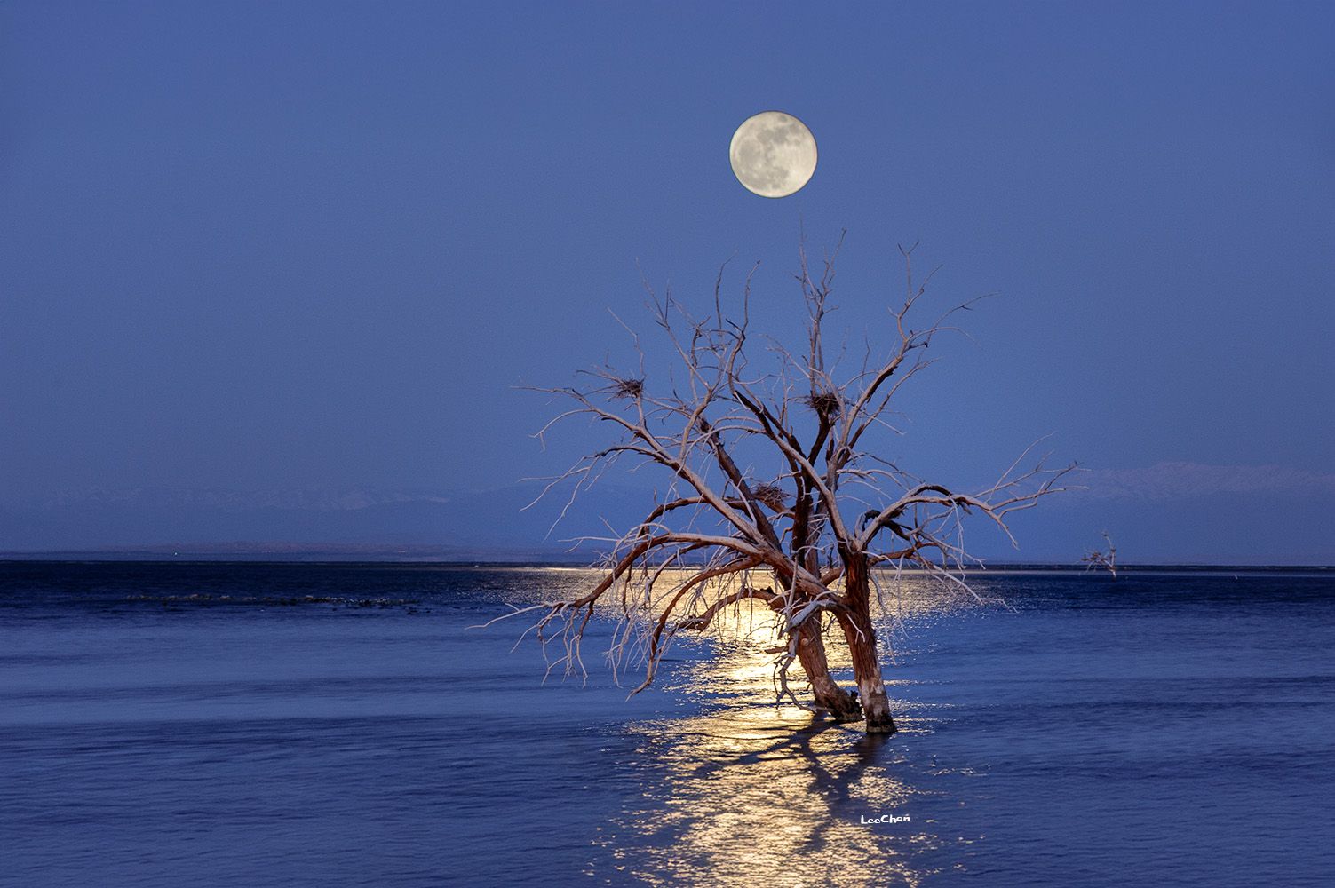 어두운 수면 위에 쏟아지는 정월 대보름달 빛이 장관이었습니다