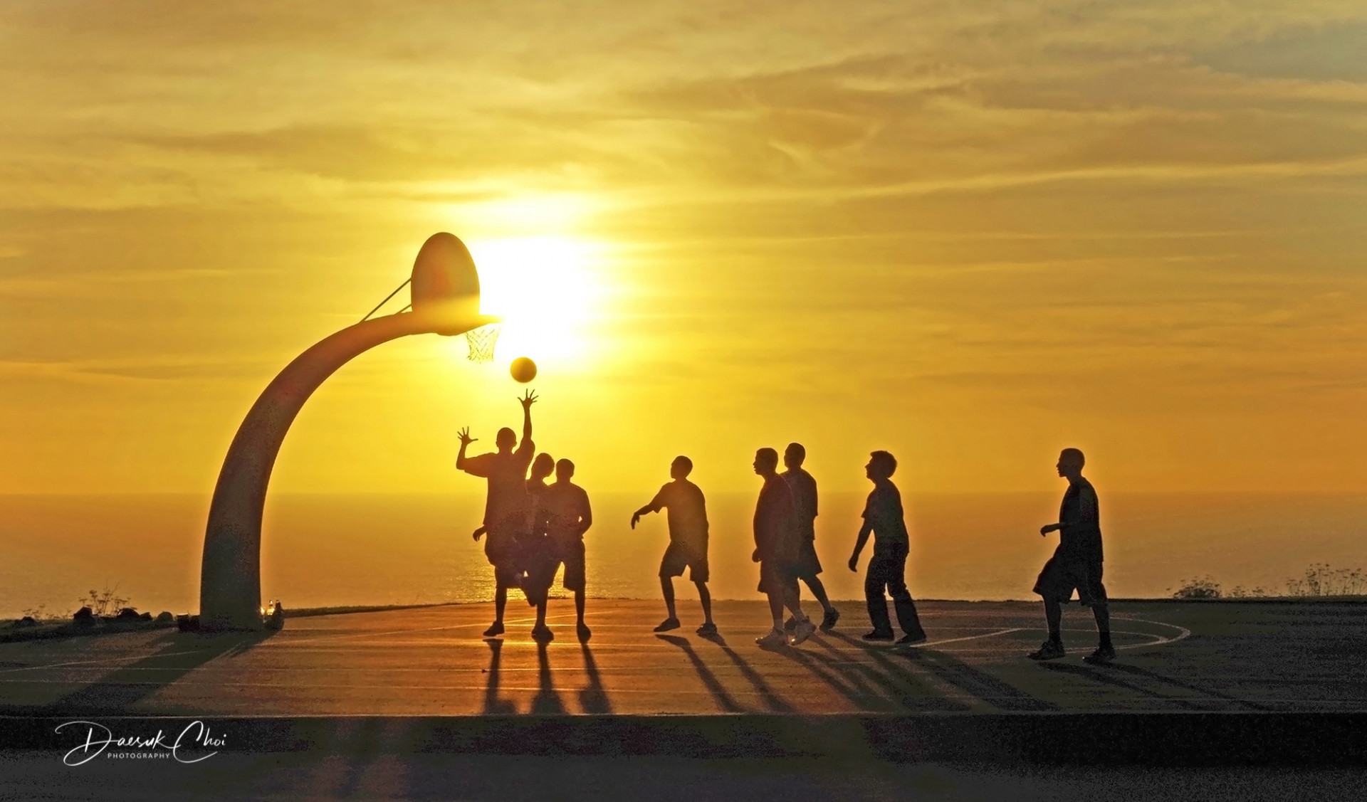 Basketball Players Baptised by Golden Sunset