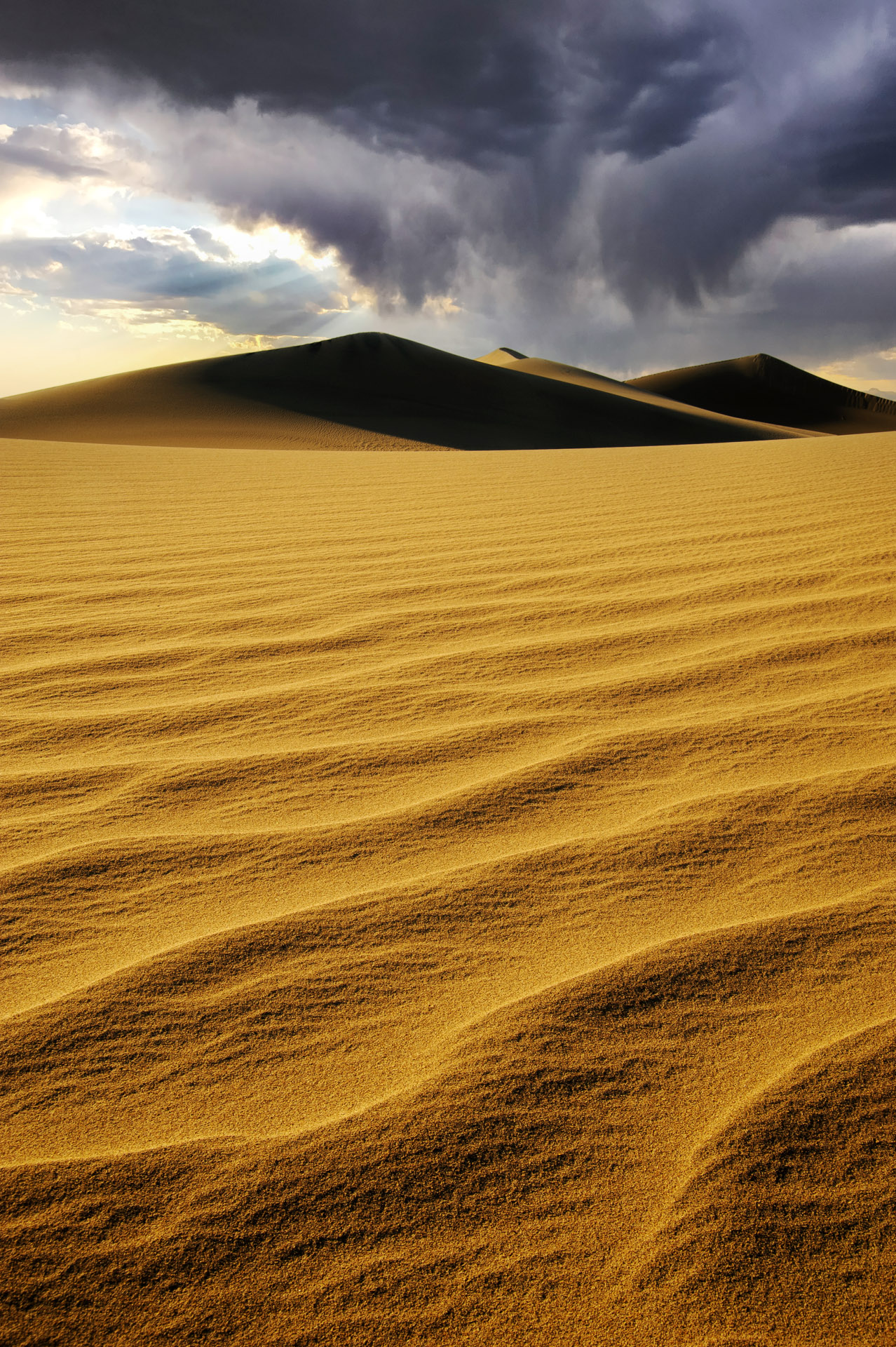 먹구름에 빛내림 요상한 하늘이 사막을 업시킨