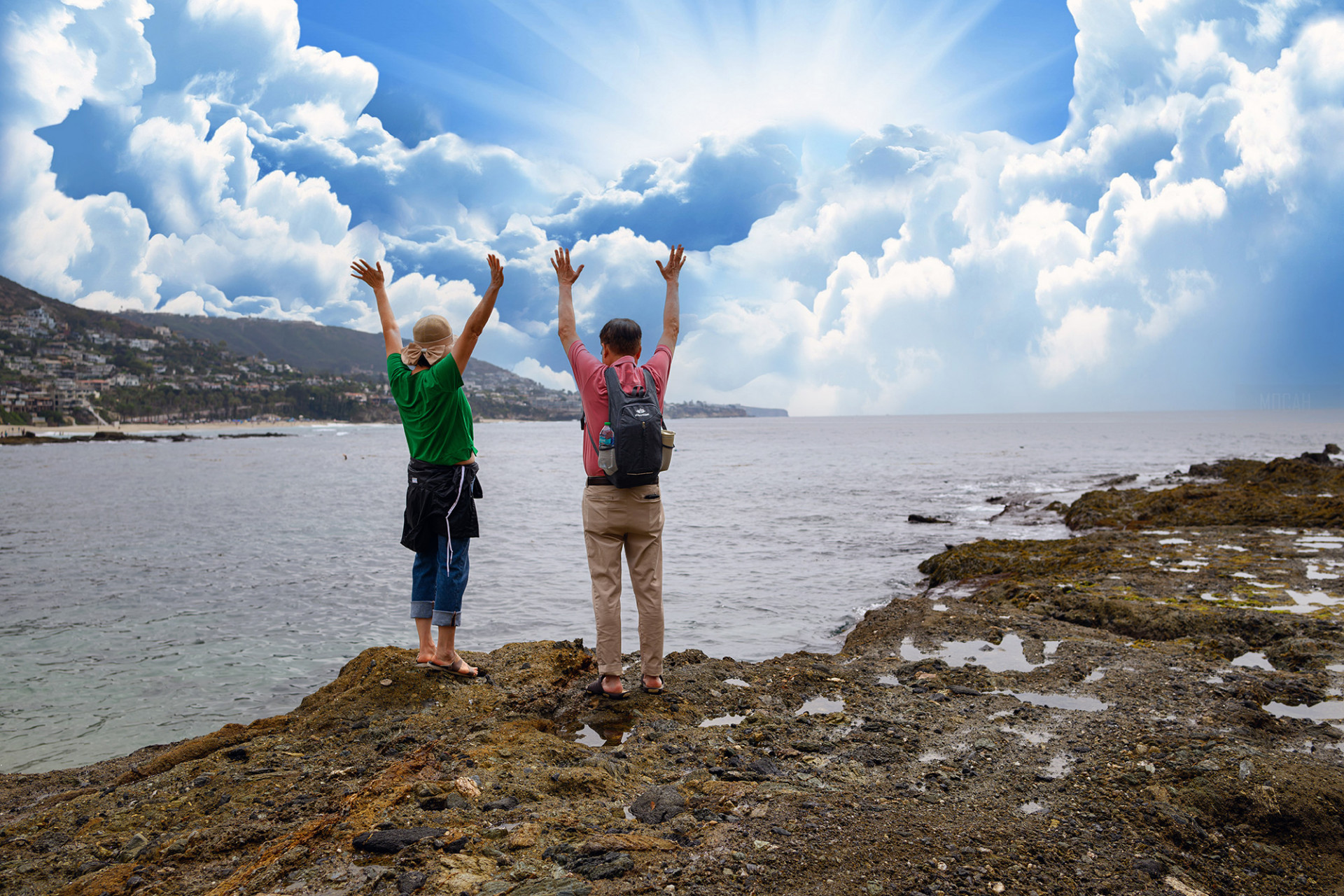 이웃 부부와 함께 소풍겸 걷기운동하러 간 바닷가에서 연출했습니다