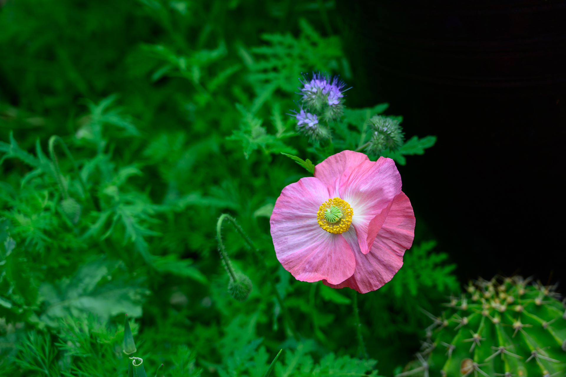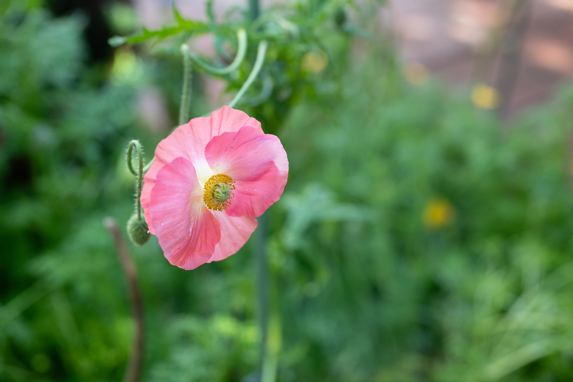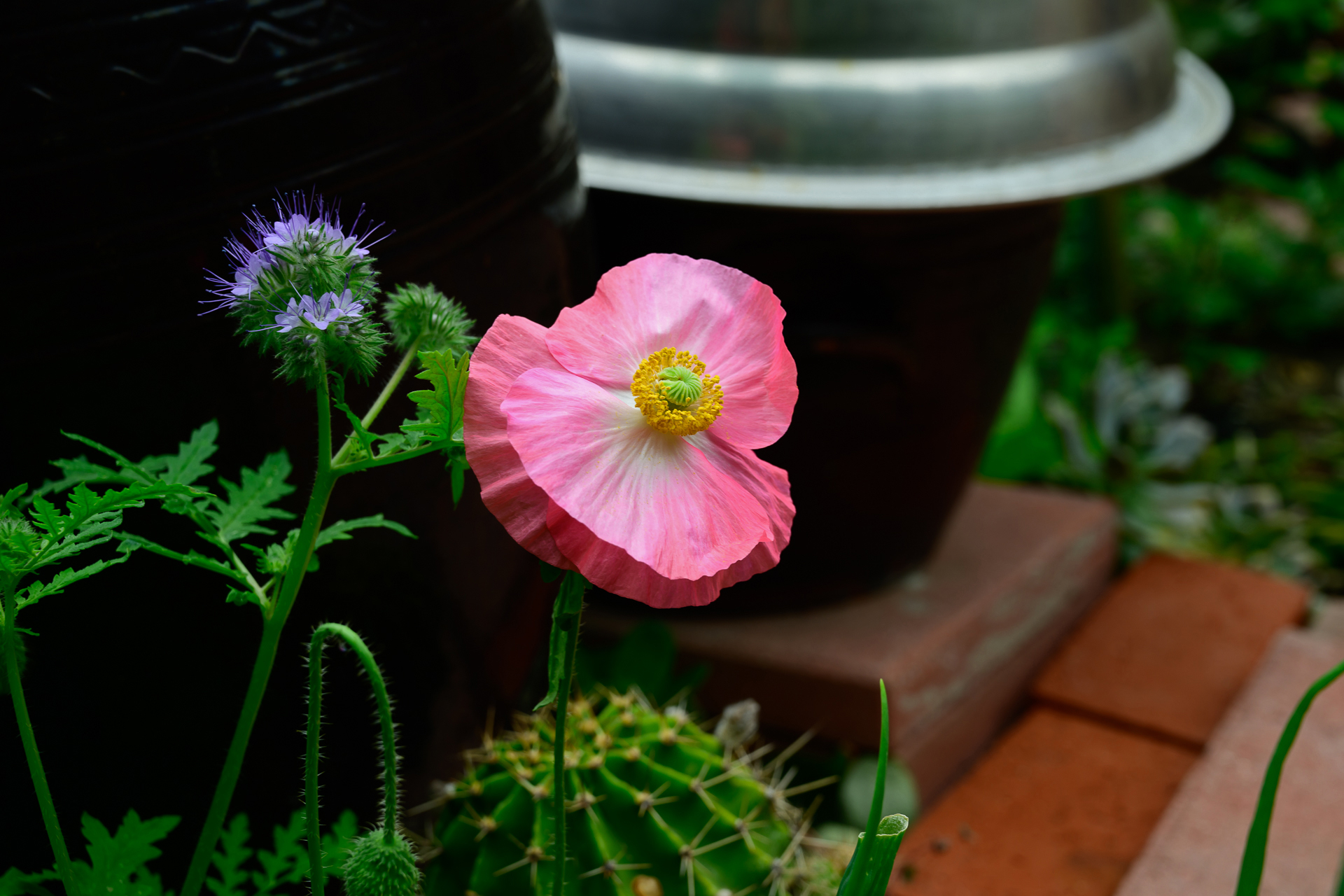 장독대 옆에서 피어 난 야생 양귀비 한 송이
