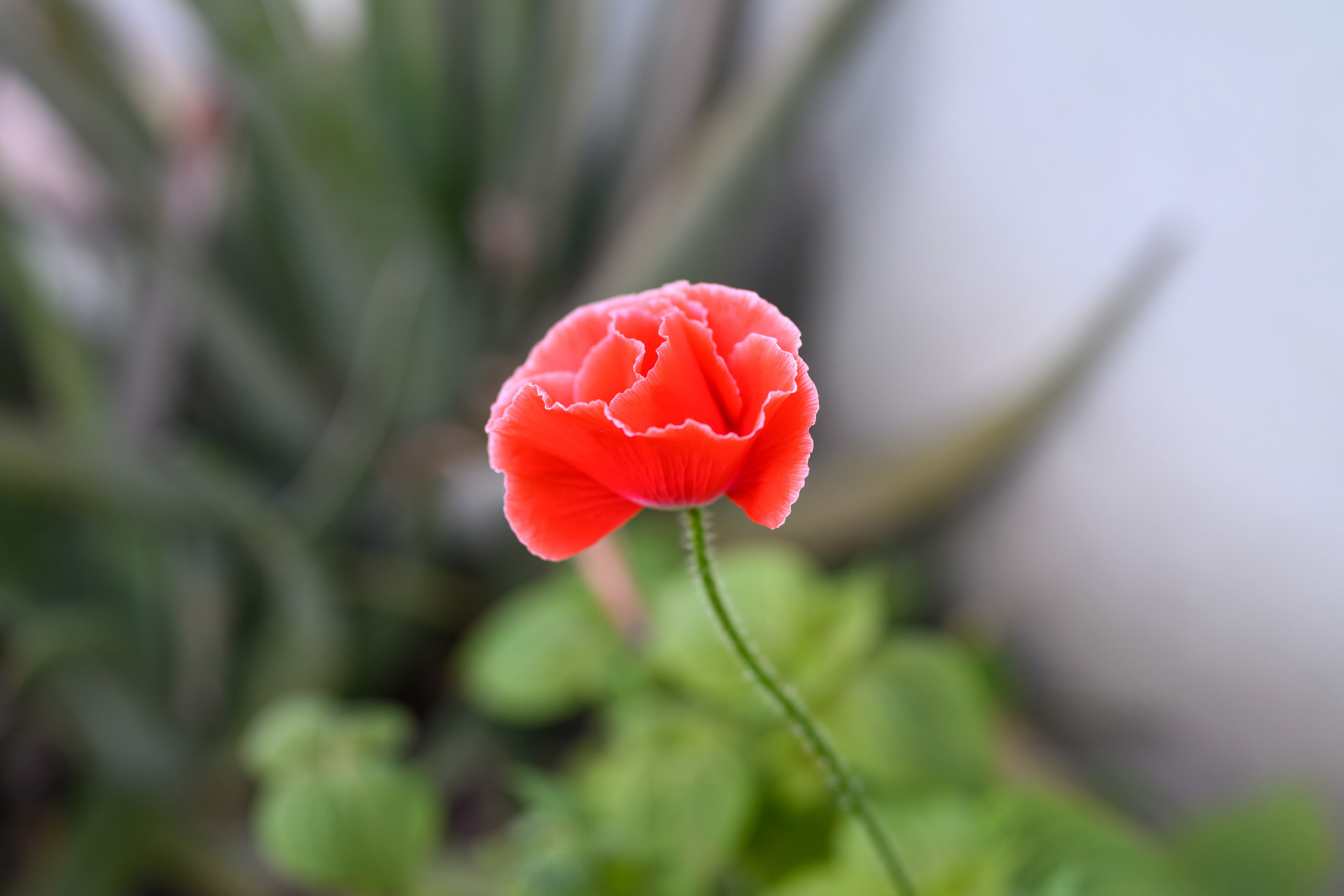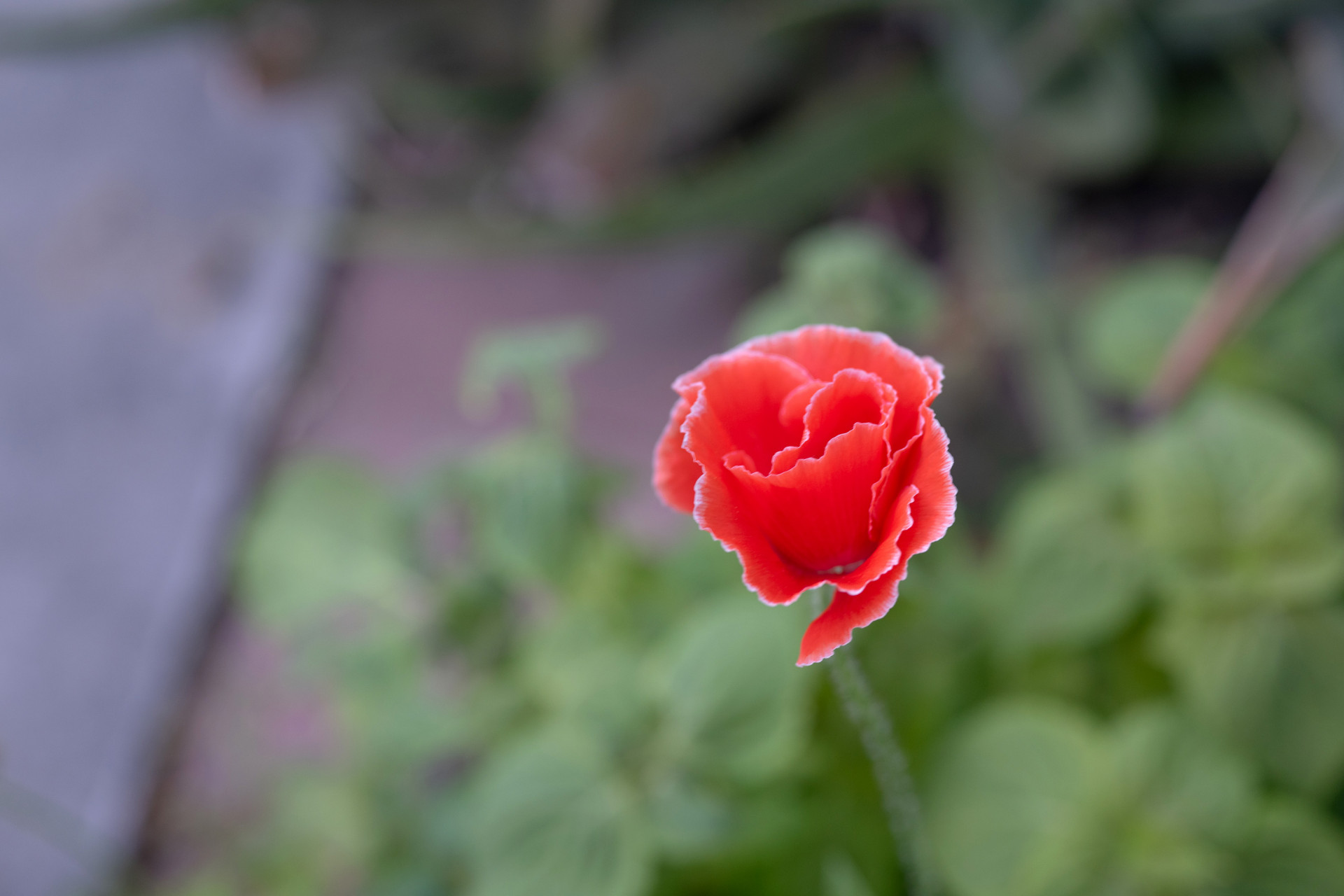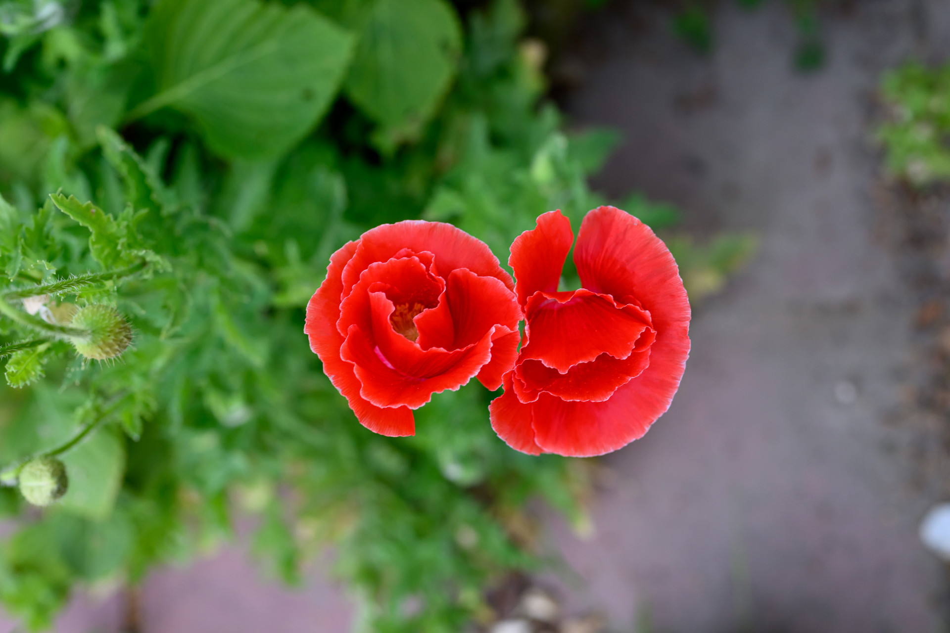 드라이브 웨이 구석에서 새로 피어 난 파피