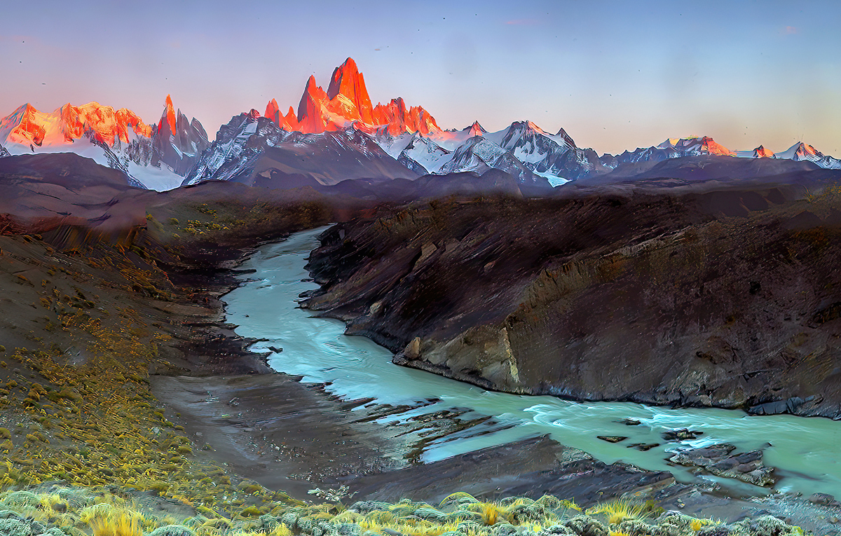 광물질이 함유돼서 회녹색 빛으로 흐르는 강물이 마치 유화를 보는 듯 합니다