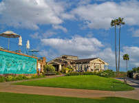 LA Arboretum의 중심에 자리한 역사적 건축물, 퀸 앤 코티지. 빅토리아 양식의 정교한 미학이 붉게 물든 나무와 ..