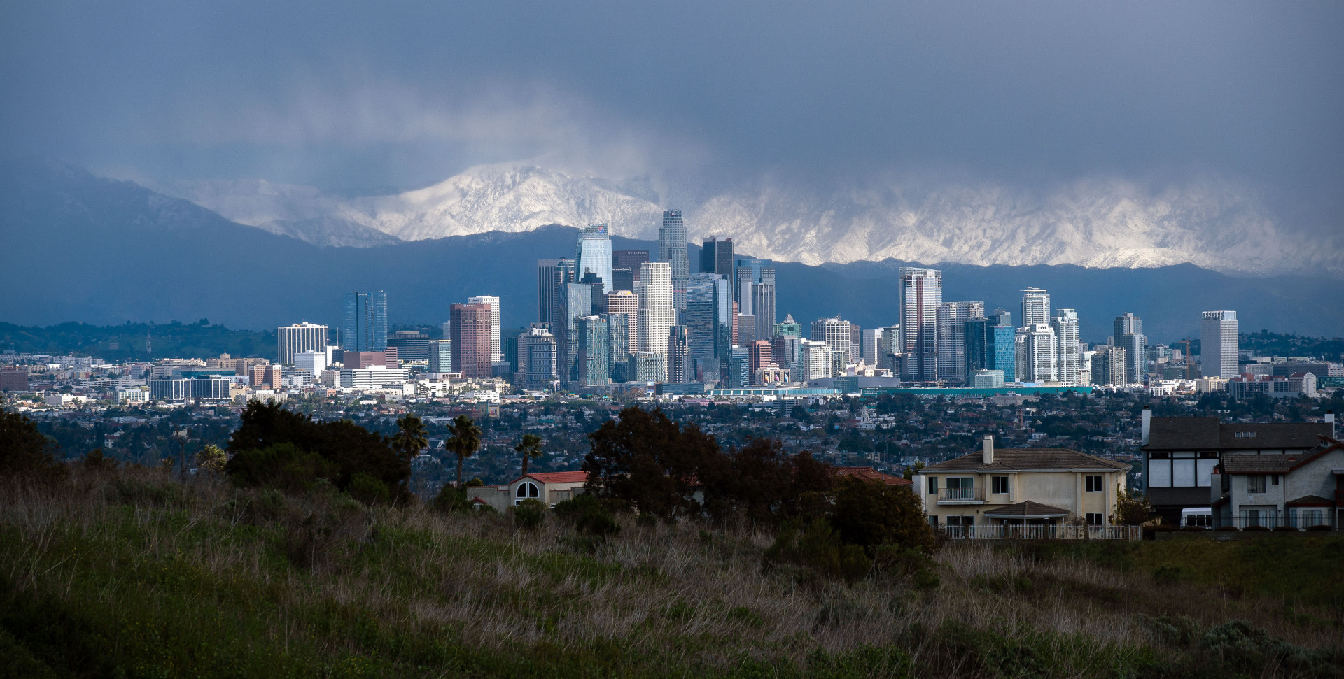 배경에 보이는 앤젤레스 내셔날 포레스트가 눈에 덮이는 건 희소한 사건이죠.