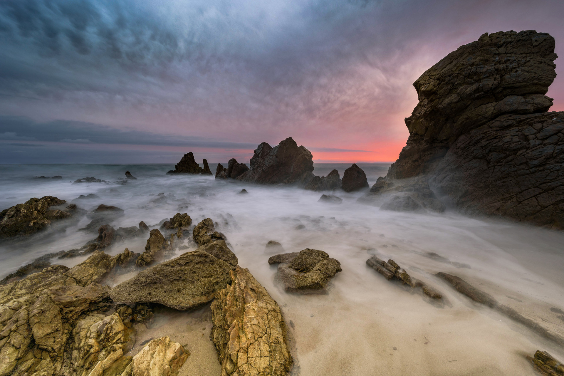 파도와 노을