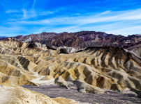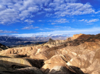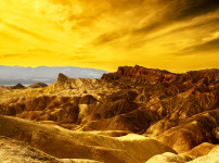 대스밸리 자브리스키 포인트의 침식된 능선 위로 노을빛이 스며들며, 대지의 주름과 결이 또렷하게 드러난 순간입니다. 금빛 하..