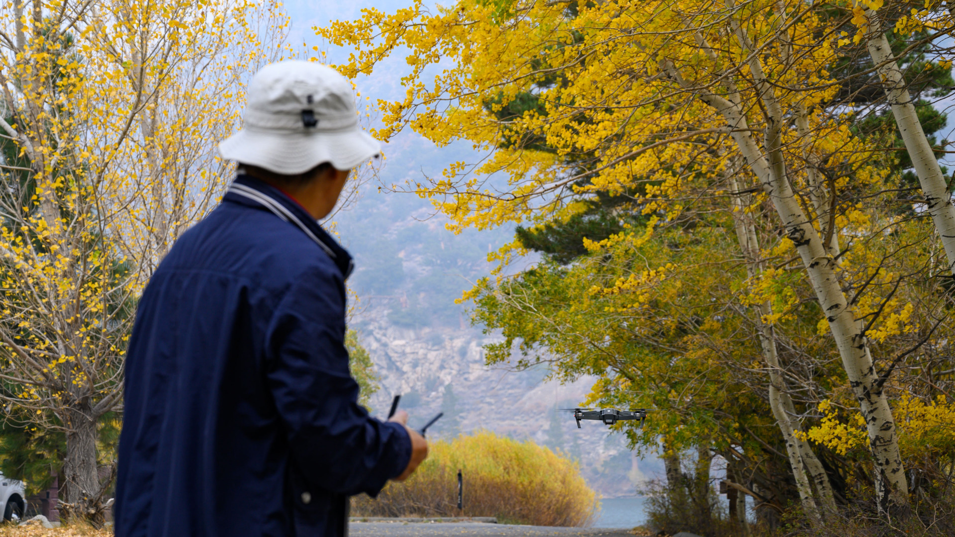 이스턴 시에라 가을출사에서 South Lake 공중촬영을 위해 드론을 출격시키고 있습니다.