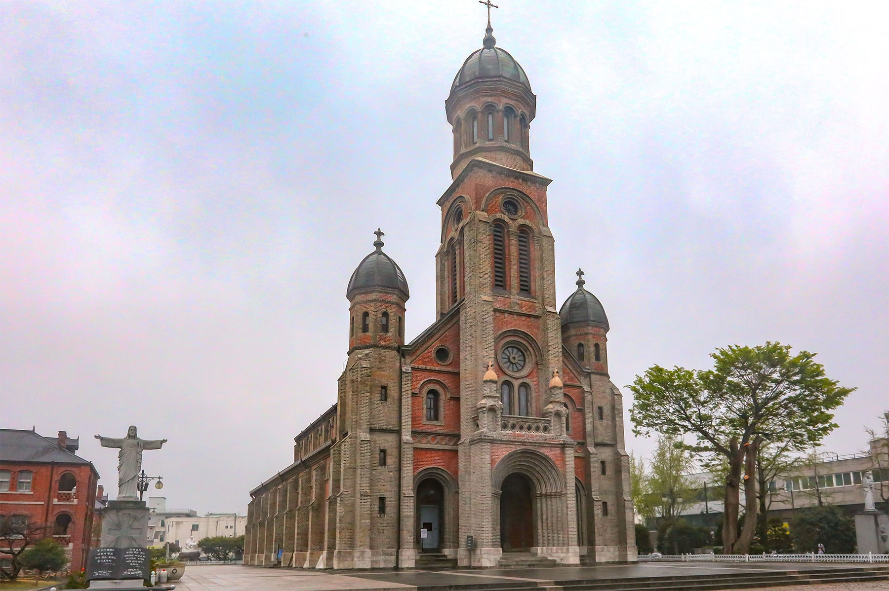 전주한옥마을에 자리잡은 전동성당은 110년전에 로마네스크양식과 비잔틴양식의 돔으로