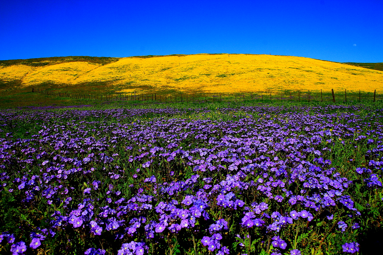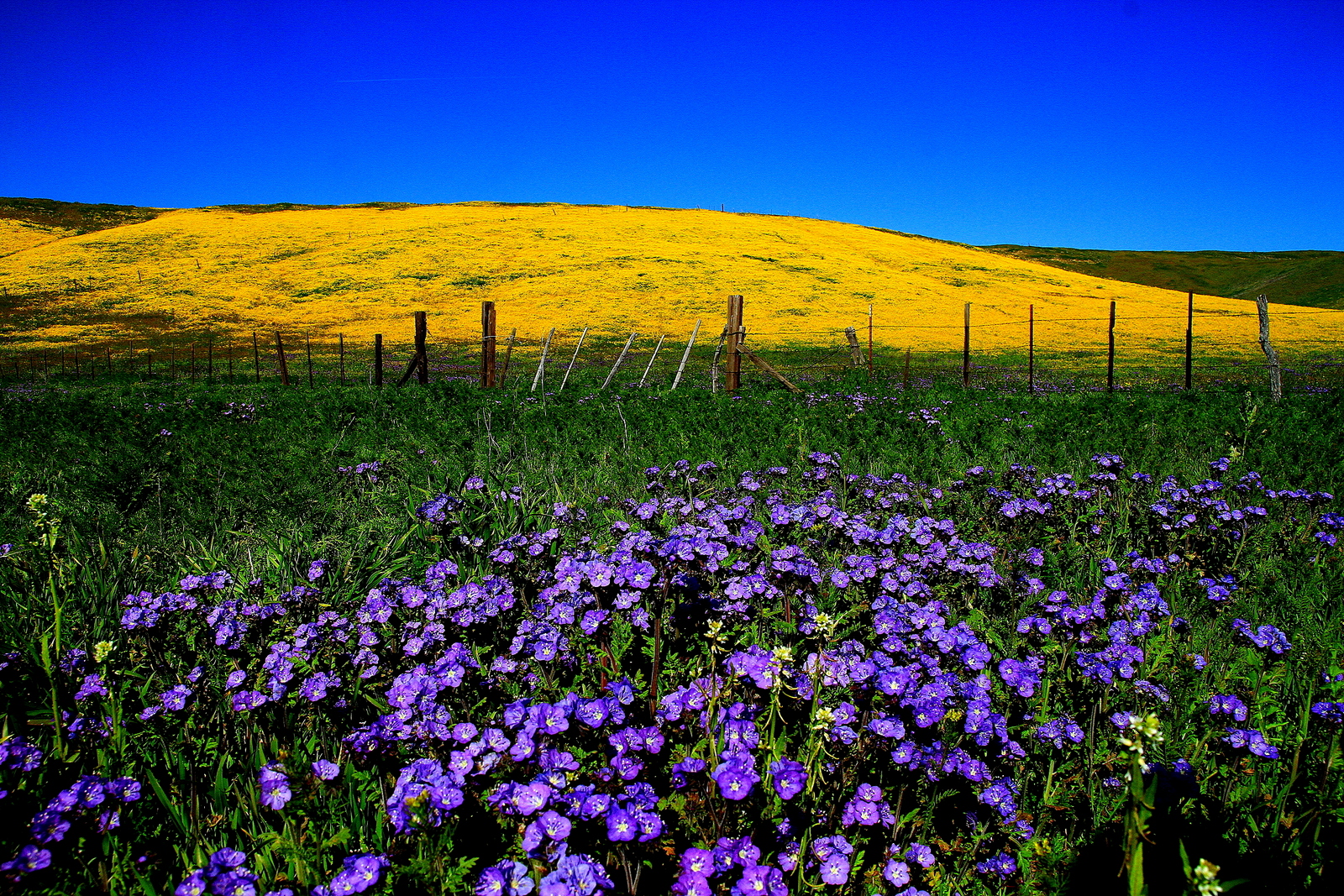 진득한 퍼플칼라의 ForeGround와 황금빛 원경이 막대기 울타리를 경계로 하모니를 이루네요.