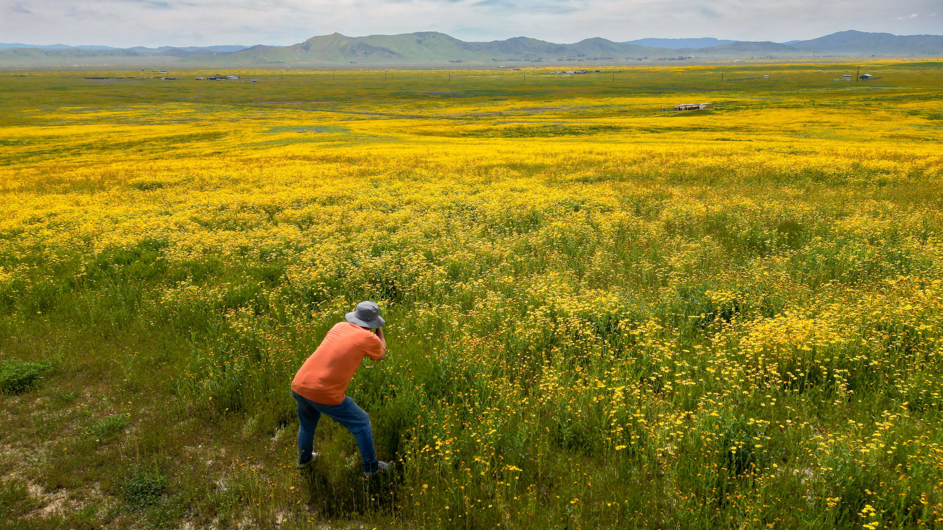 노란 꽃밭, 오렌지색 셔츠 ... 너무 근사합니다.