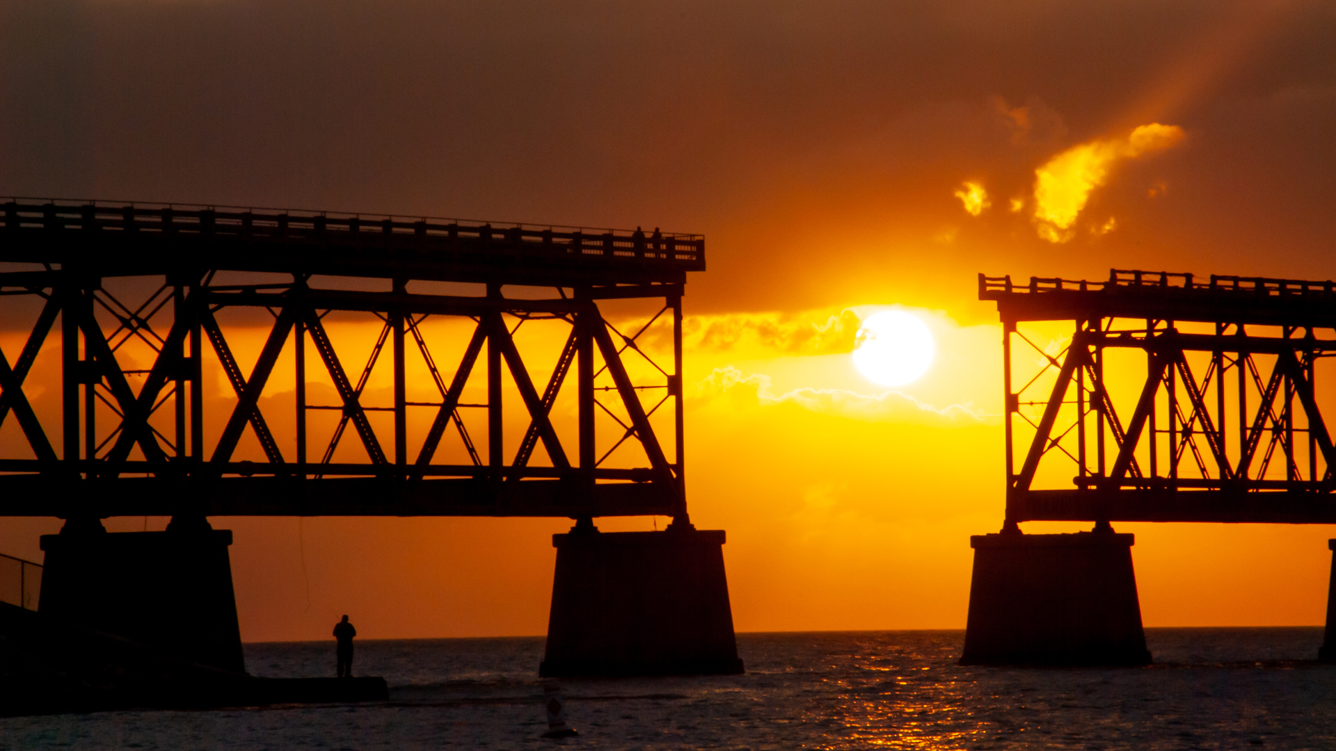 끊어진 교각 사이로 넘어가는 태양