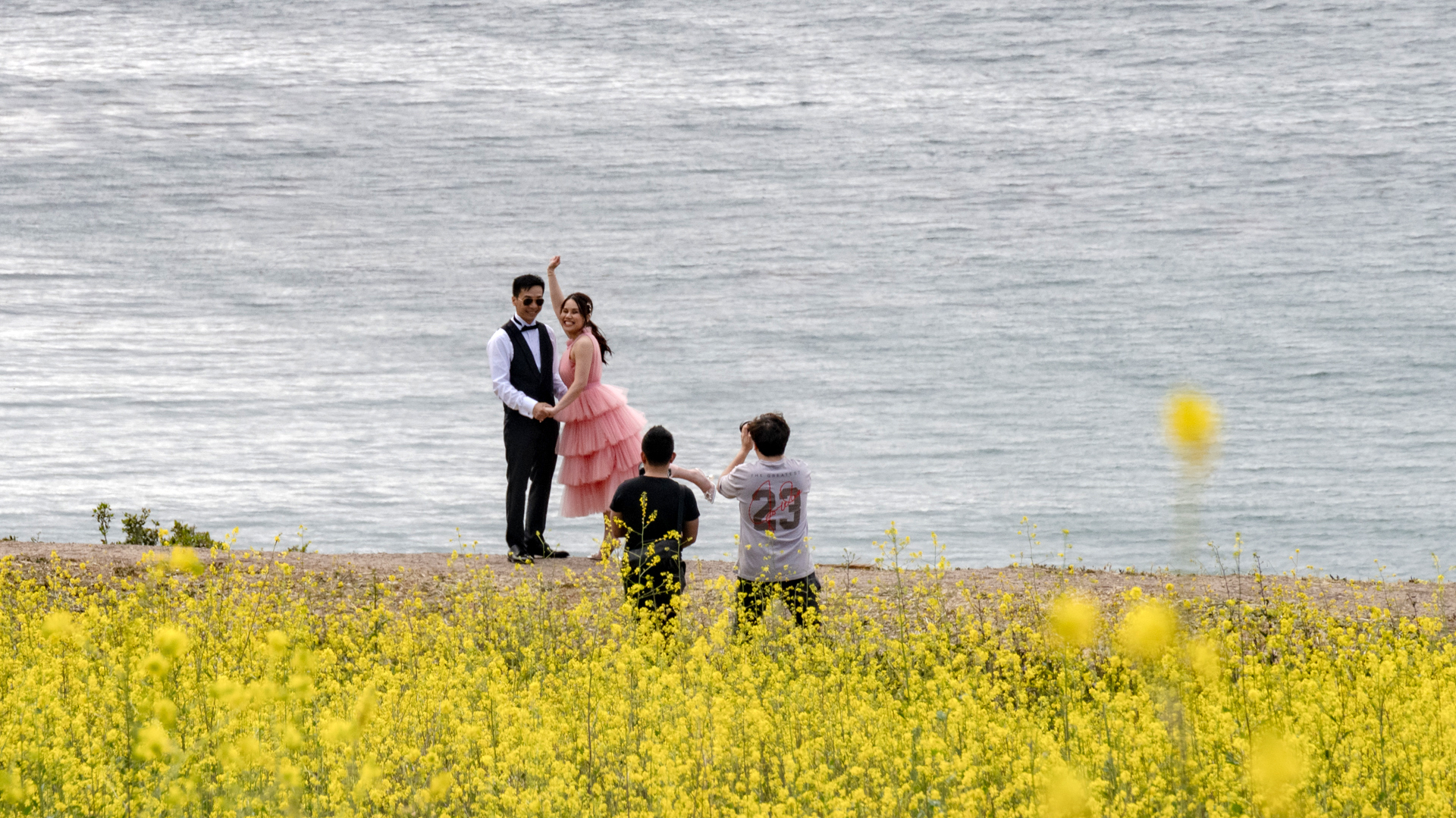 유채꽃 넘실대는 바닷가에서 결혼사진을 찍고 있길래 도촬했음 ㅋㅋ