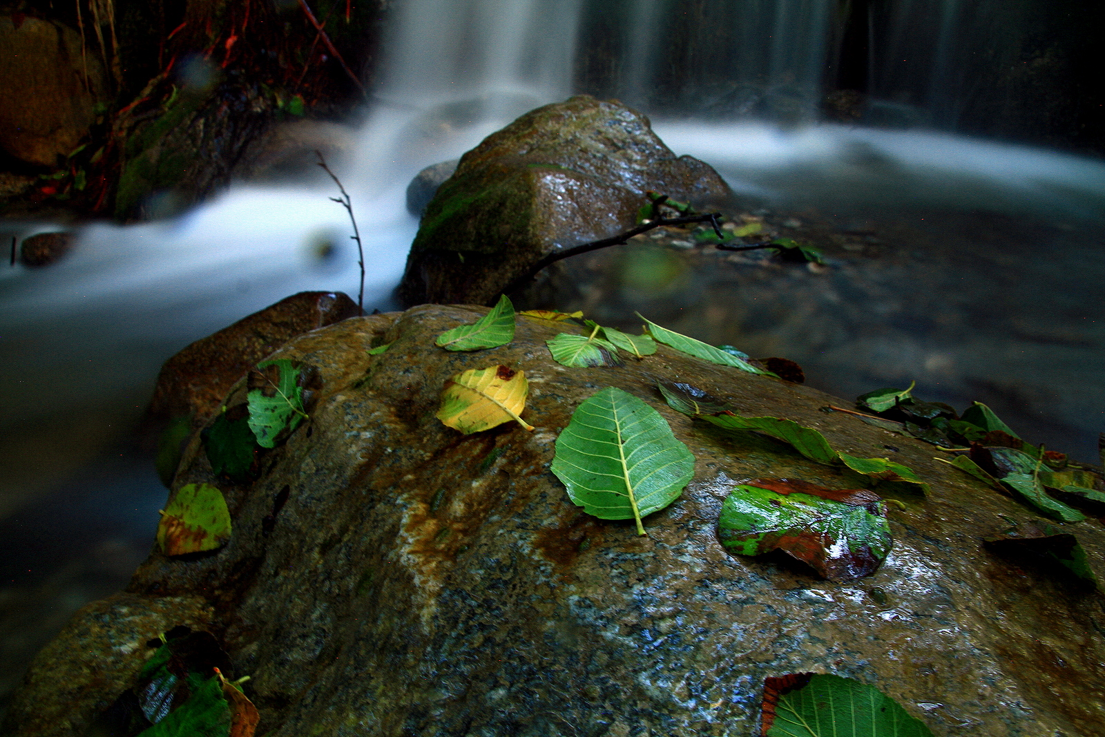 수동노출과 광각렌즈로 본 가을의 초입, 흐르는 작은 폭포의 물줄기를 섬세하게 아주 잘 표현하셨습니다