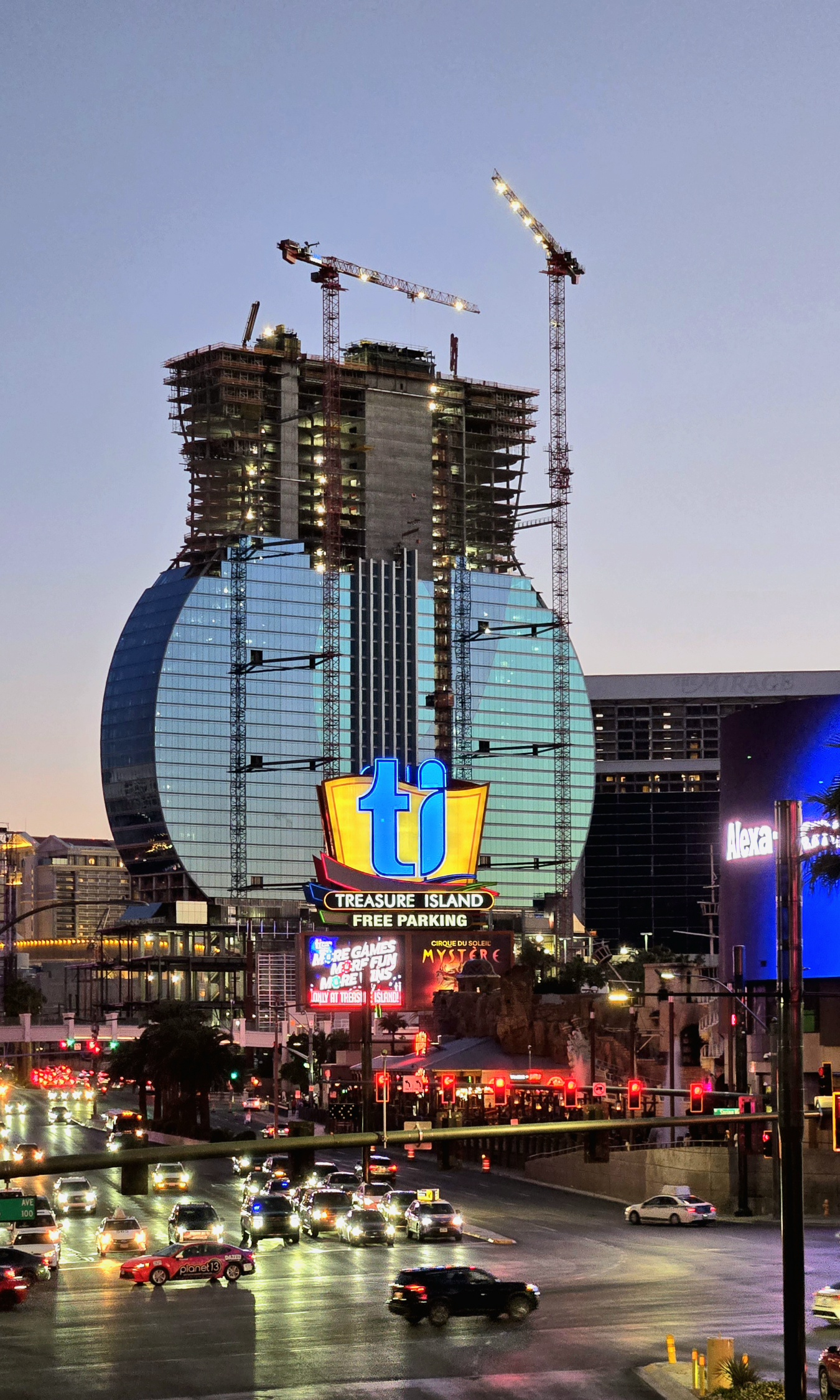 Las Vegas strip의 새로운 명소가 될 Hardrock Casino & Resort에 대한 소식을 전합나다. MGM International이 소유한 Mirage Hotel을 Hardrock Hotel이 매입하여 기존 호텔타워의 전면 Renovation을 진행중이며  Volcano Show 위치에 Hardrock의 상징인 기타모형의 호텔타워를 신축 건설중입니다. 객실 700실을 비롯 식당, 리테일 등을 포함하는 건축물로서 Height 700피트로 2027년에 완성될 계획이며 첨부한 사진은 기타호텔의 현재 건축현장의 진척 상황입니다. 2027년 개장과 함께 라스베가스 스트립의 또 다른 명소로 각광을 받게될것으로 확실시 됩니다. 라스베가스길 남, 북쪽 양방향에서 촬영이 용이할 것으로 보입니다. 위 사진은 Fashion Show와 Wynn Hotel을 연결하는 Over Pass Bridge에서 쵤영하였습니다. 개장일이 벌써 기다랴지며 완공된 구호텔타워와 신규 기타호텔의 내부가 사뭇 기대가 됩니다. 맨 아래 사진은 조감도입니다
